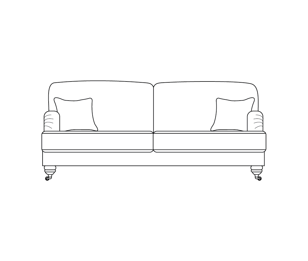 The sofa is built for both comfort and sophistication, supported by a high back designed for ergonomic lumbar and shoulder support. It sits atop beautifully turned wooden feet in the choice of oak and mahogany finish, with the front legs featuring vintage style brass casters for a touch of period style flair and easier mobility. This combination of deep-filled cushions and sturdy, elevated craftsmanship that feels as luxurious as it looks.